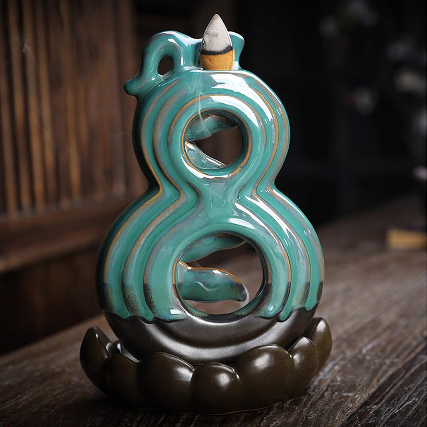 Cu o formă inspirată de infinit, Ritualul Șarpelui evocă echilibrul dintre trup și suflet. Fumul curge asemenea unui râu tăcut, învolburându-se prin canalele sinuoase ale ceramicii. Potrivit pentru cei care caută un obiect decorativ cu valoare simbolică și funcțională.